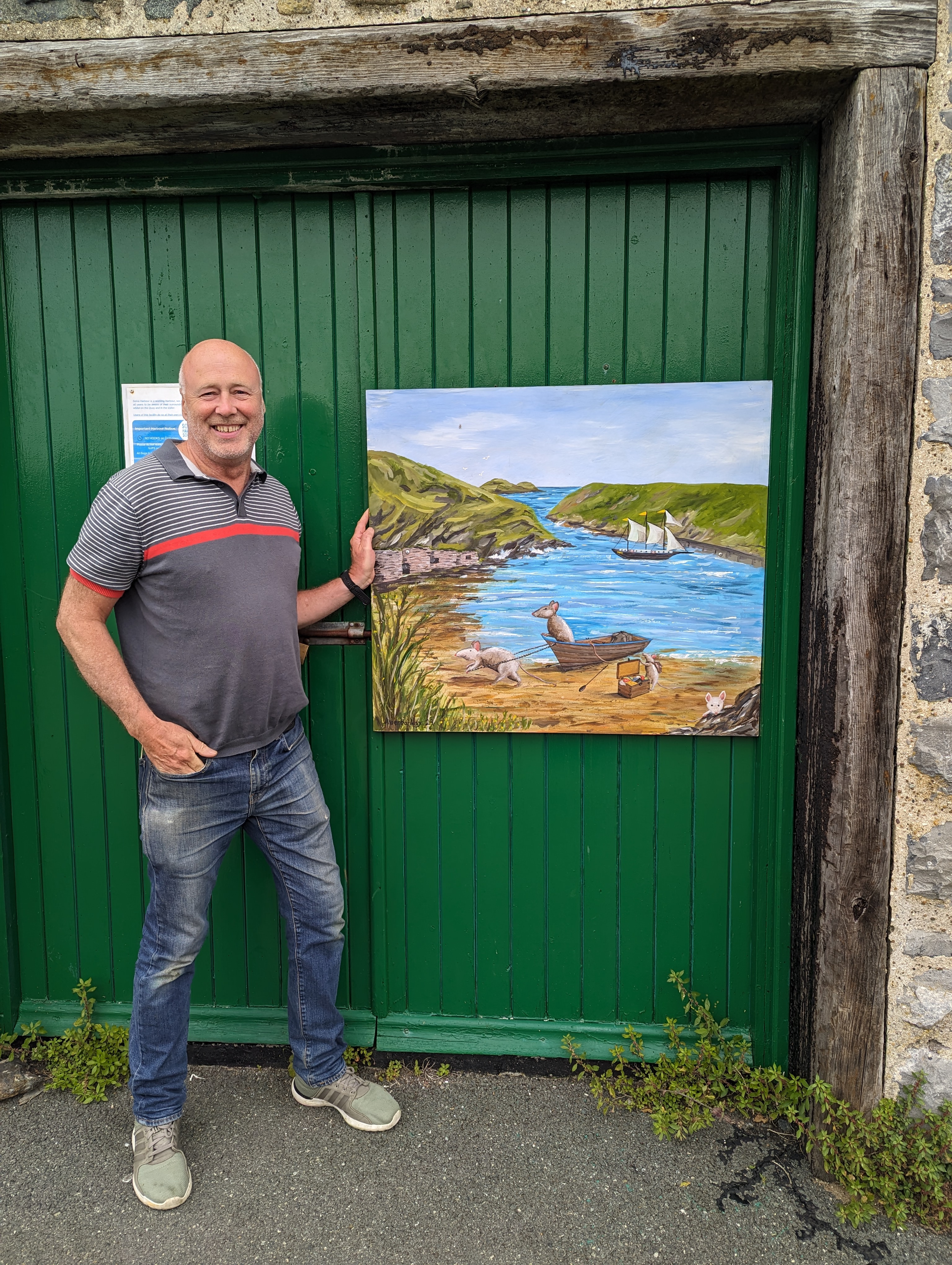 Many thanks to Peter Taylor, who originally started the Mouse trail in Aberporth, and kindly let us use his idea and painted a picture of the mice arriving at Solva Quay for our own Mouse trail.